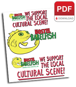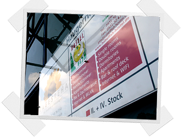 Den Haupteingang verlassen und links am Kiliansbrunnen vorbei gehen. Die zweispurige Straße (Haugerring / Röntgenring) überqueren. Der Eingang zum Hostel (Haugerring 2) befindet sich zur Linken des Hotels Regina.